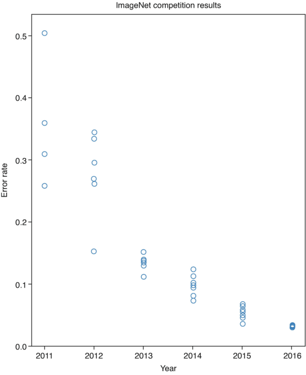 Rys. 1.2 Historia współczynnika błędów w sieci ImageNet